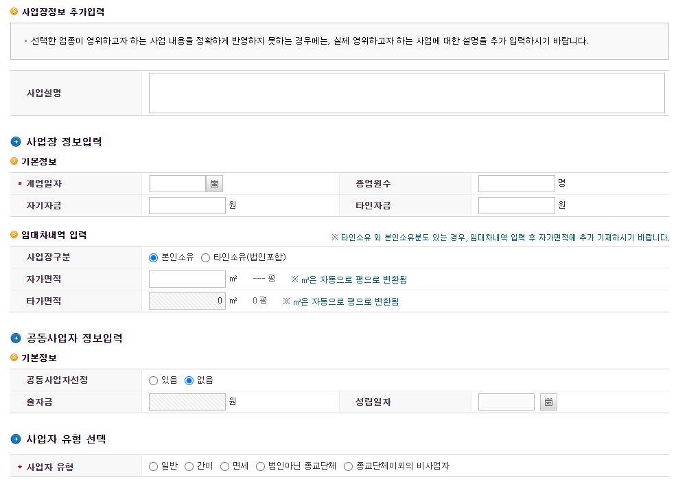 업종 반영에서 정확하게 반영되지 않는 업종은 사업설명에 추가로 기재해주시면 됩니다.