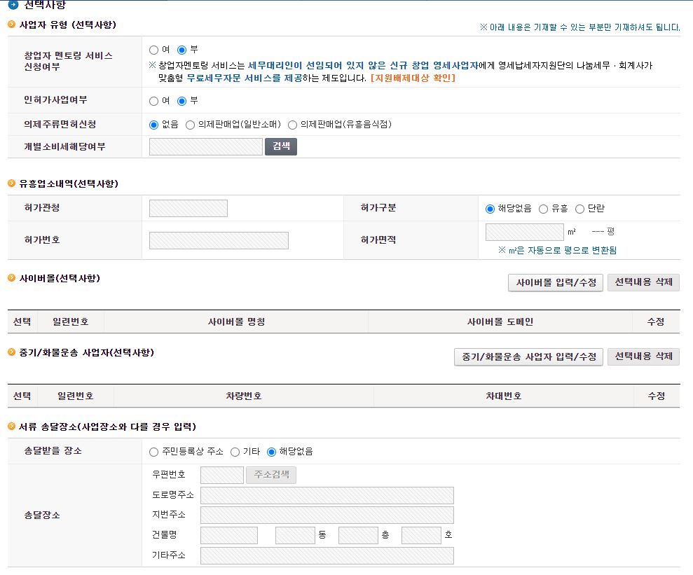 여기서 사업장 소재지가 자택이 아닌 임차한 경우라면 사업장 소재지를 입력해주시면 됩니다.